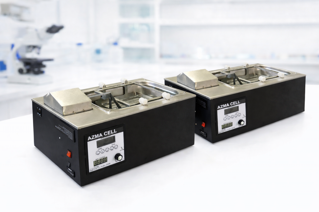 بن ماری های شیکردار طراحی شده آزما سلول همگی دارای برد PID می باشند و نوسانات الکتریکی به حداقل ممکن رسیده است .شیکر بن ماری برای مخلوط کردن توام به همراه گرما محیطی مناسب را فراهم می کند .